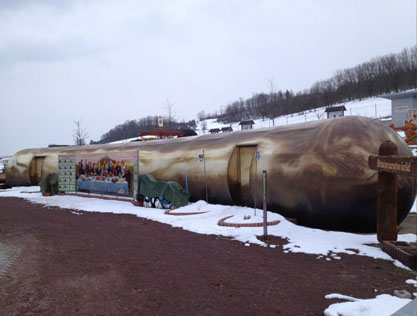 Ganz in der Nähe des Eisenbahnmuseums gibt es die "Bratwurstwörld" und die wohl weltweit größte "begehbare Bratwurst".