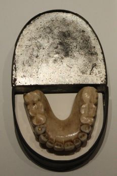 Waterloozähne, gefertigt mit Hilfe von Zähnen bei der Schlacht um Waterloo gefallener Soldaten. Hier lagen "ertragreich" 47.000 Gefallene dicht an dicht.