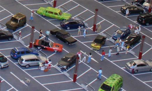 Im obigen Bild sollte man die beiden grünen Autos entdekcen können. Hier sind wir nun näher dran... unten links, die Dame hat Ihren Gepäckwagen losgelassen und der macht sich nun selbstständig auf die Reise... derweilen geben die Mitglieder des ansässigen LowRiderClubs gerade mit ihren tanzenden Schlitten an...