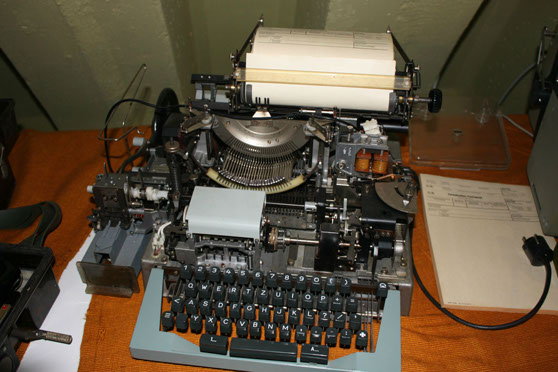 Ein Sammlung an Telegraphen, sowie unterscheidlichen Fernschreib- und Fernsprechern.