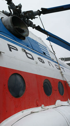 Unten: Mi-8 Hubschrauber im Aussengelände
